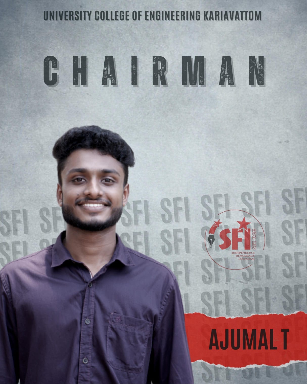 The College Union was officially inaugurated on April 25, 2023, by essential support staff of the college. The event's chief guest was MLA Harindran. The program was chaired by Union Chairman Ajumal T, with greetings from the college principal, Dr. Prof. Bisharat Bibi, the Dean, department heads, and SFI UCE Unit Secretary Vignesh. Vice Chairperson Sradha R. Kurup delivered the vote of thanks.